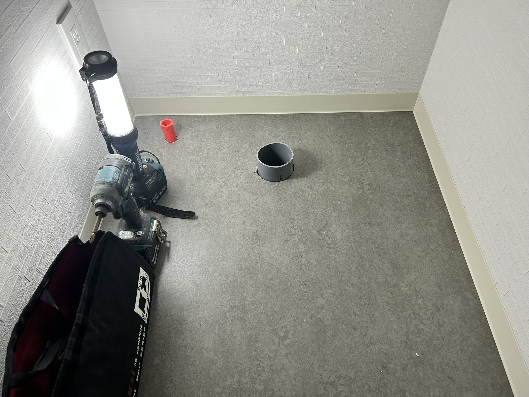 まずは給排水管が所定の位置に配管出来ているかどうか確認です。